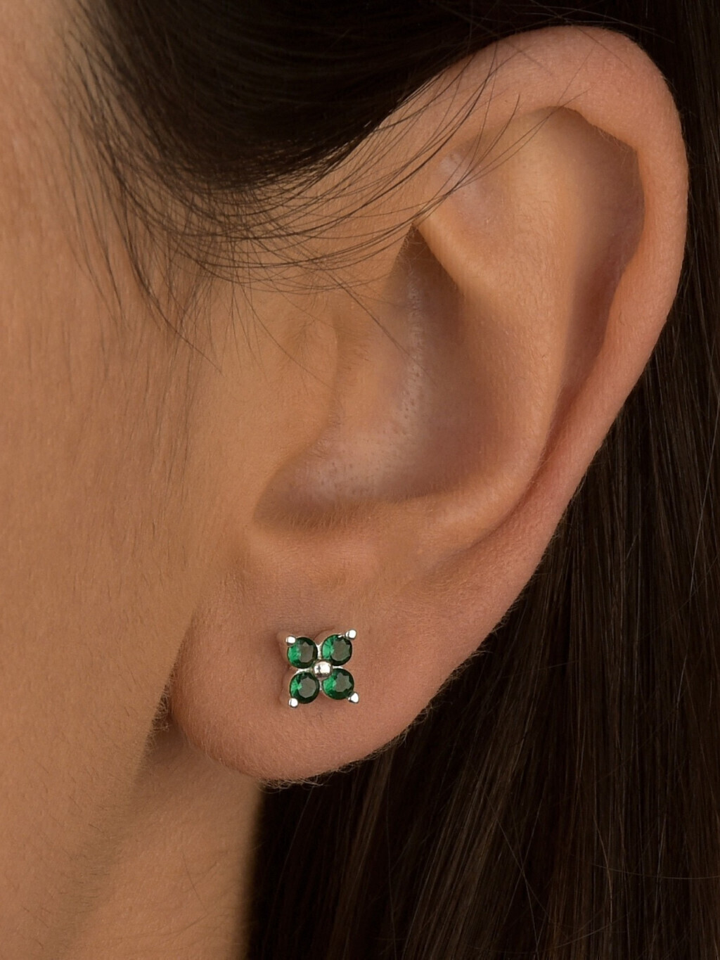 Brinco feminino pequeno 6mm flor em prata 925 legítima cravejado com zircônias na cor verde esmeralda