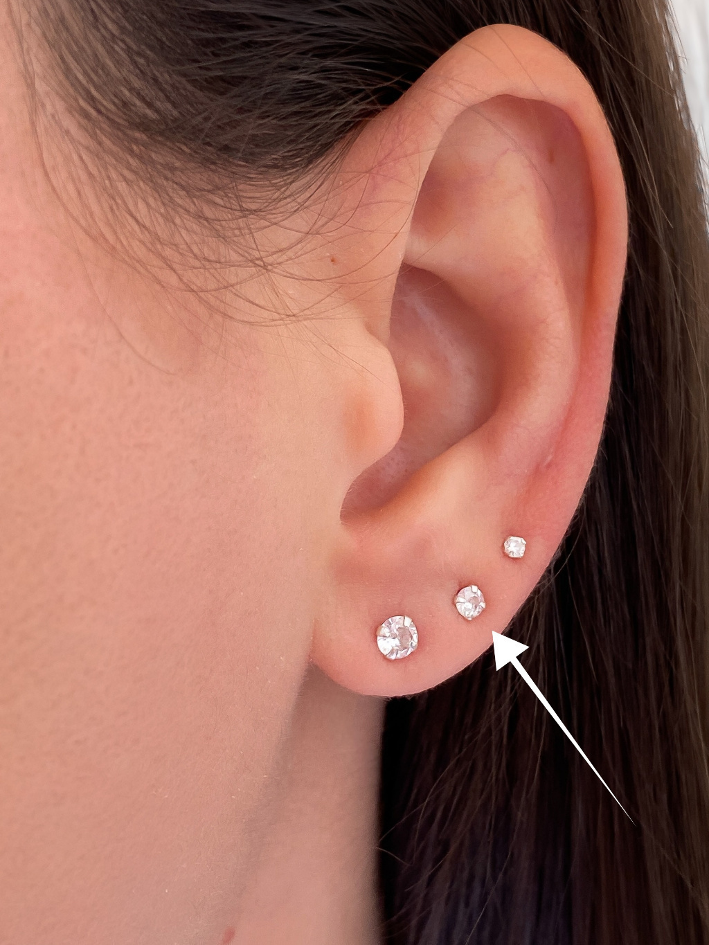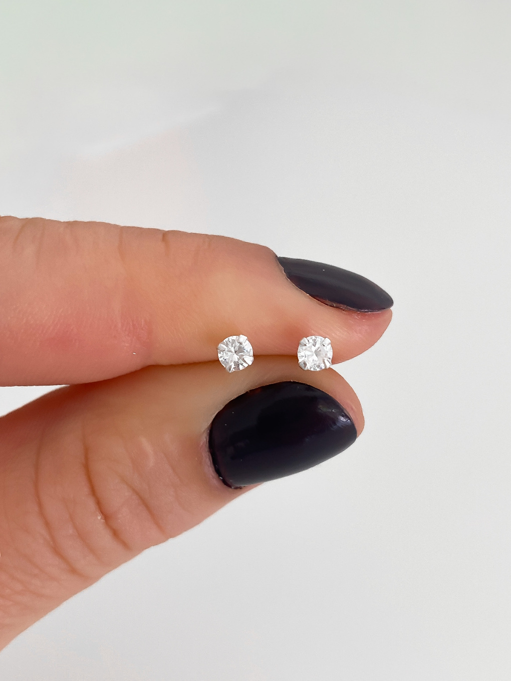 Brinco pequeno 3mm em prata 925 legítima ponto de luz zircônia delicado segundo terceiro furo