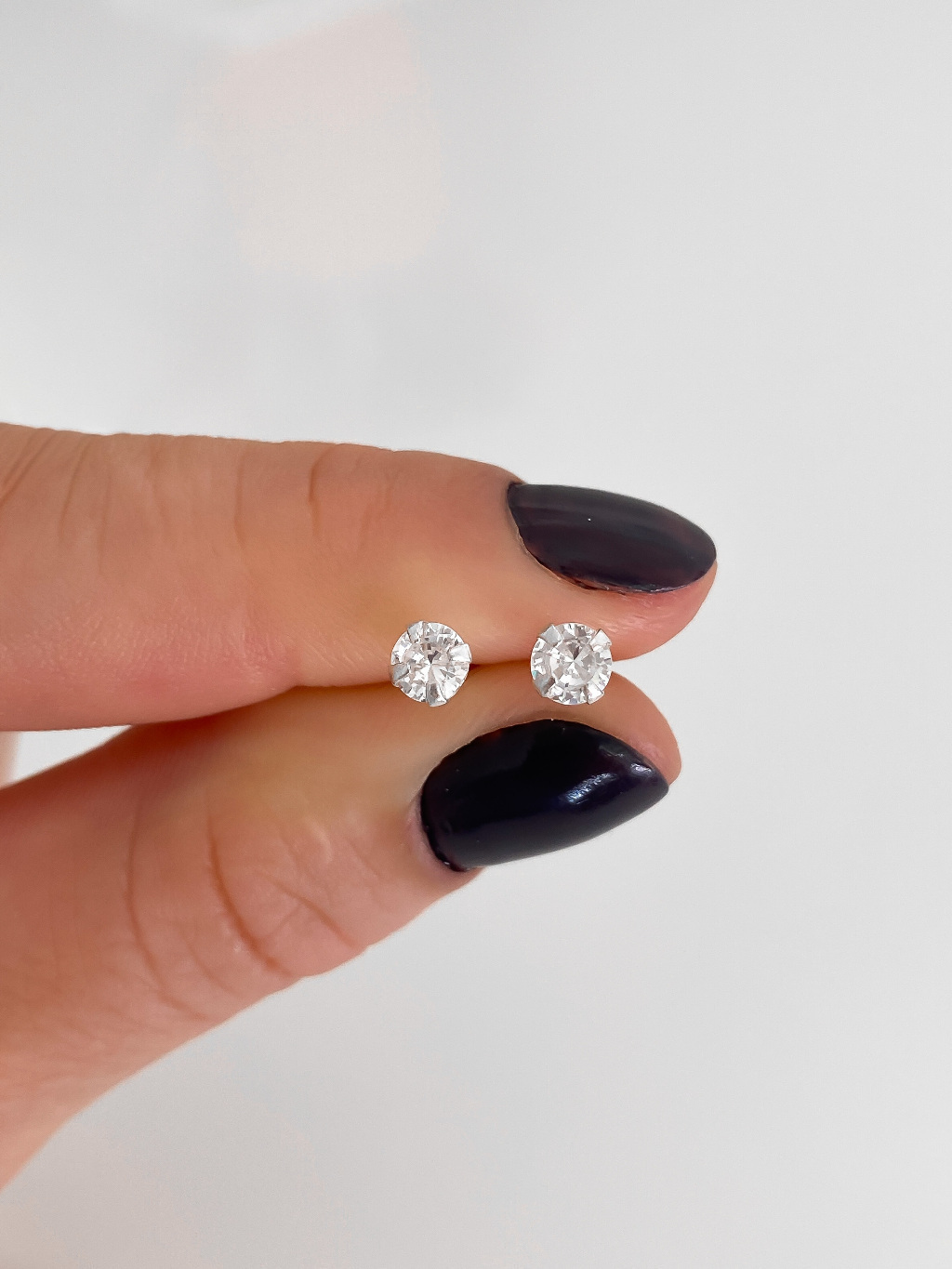 Brinco pequeno 4mm em prata 925 legítima ponto de luz zircônia delicado segundo terceiro furo