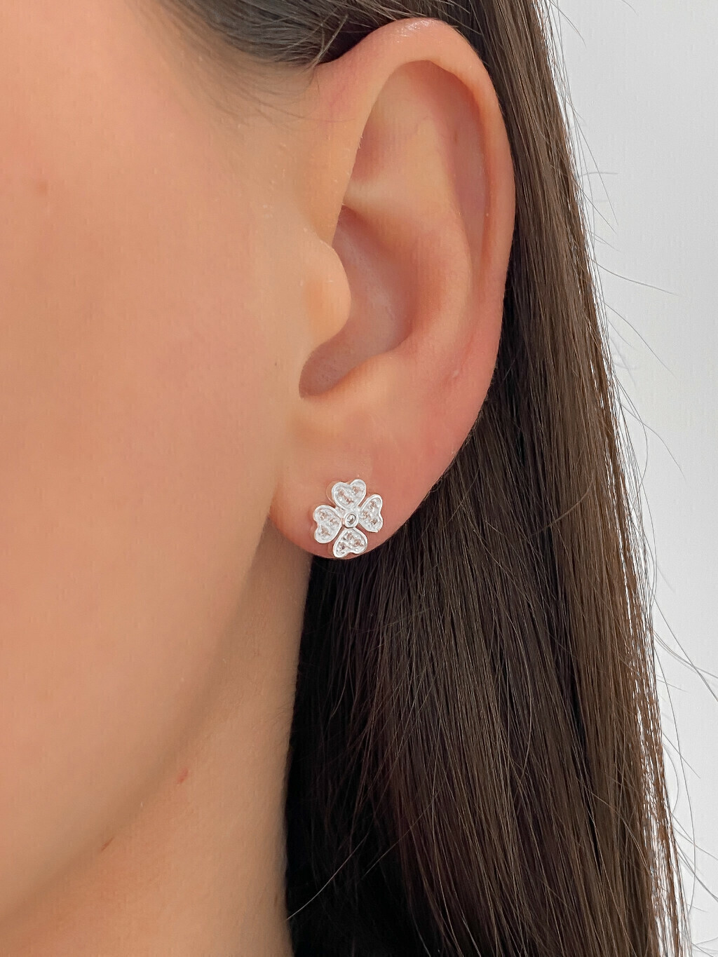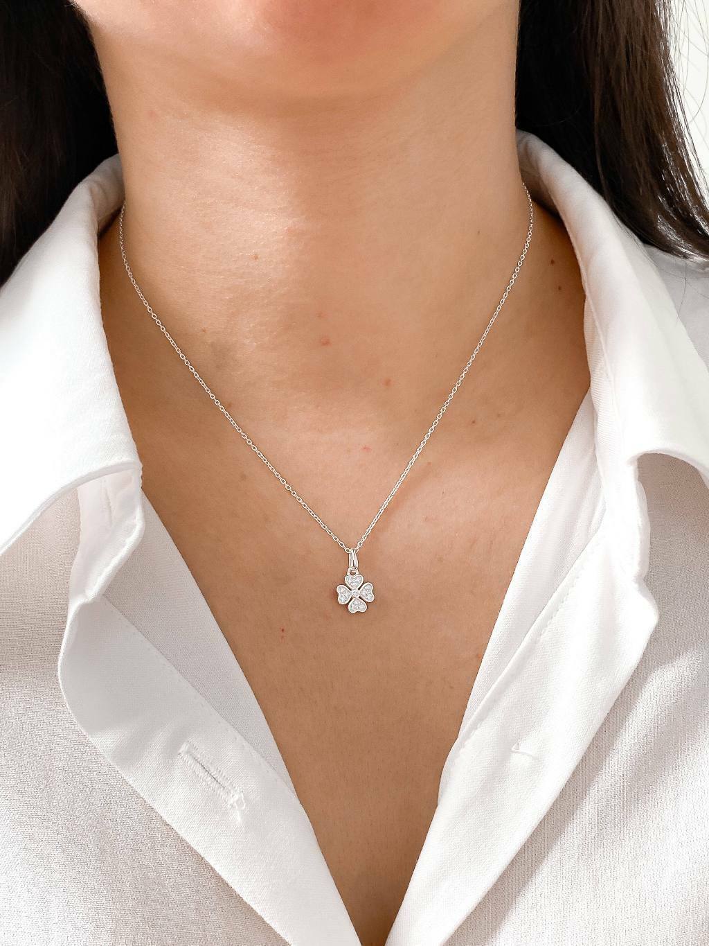 Conjunto Brinco e Colar em Prata 925 legítima trevo de 4 folhas cravejado com zircônias.