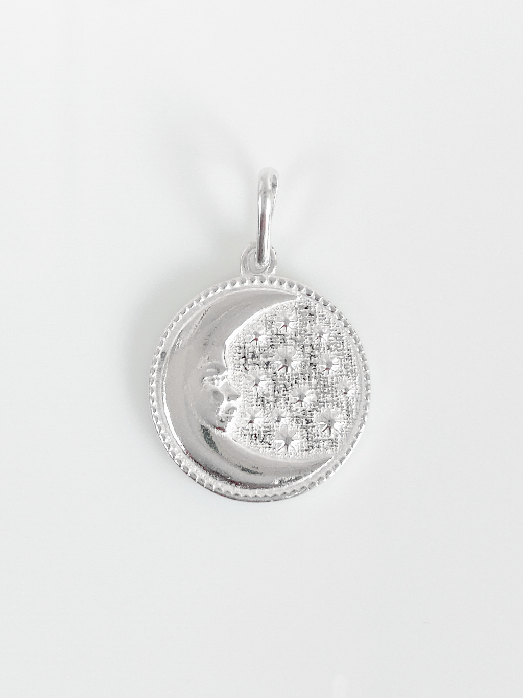 Pingente medalha em prata 925 legítima maciça lua e estrelas.
