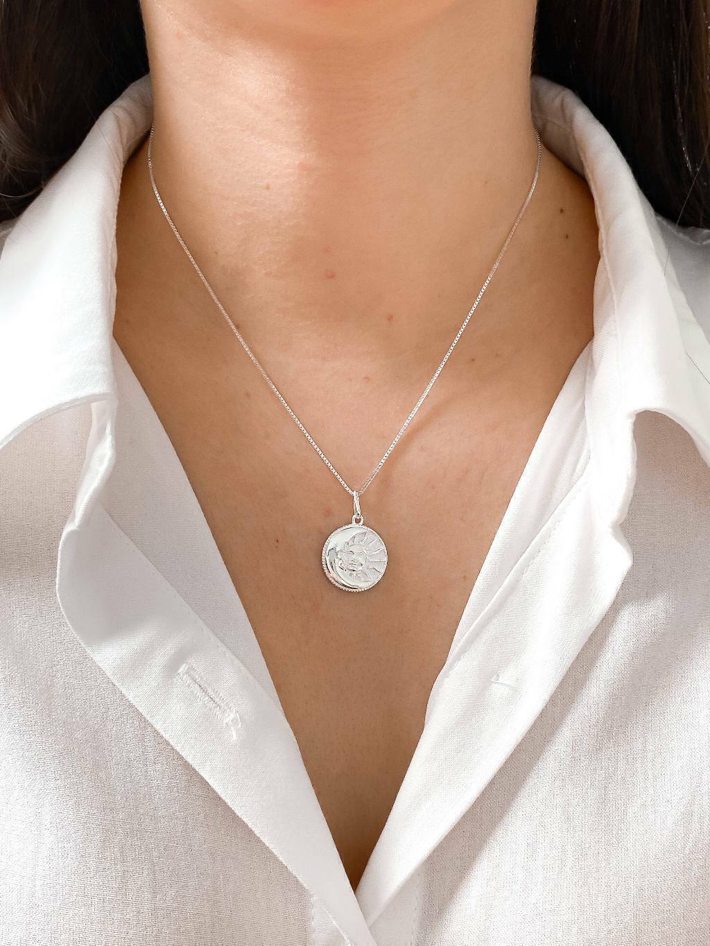Pingente medalha em prata 925 legitima maciça lua e sol