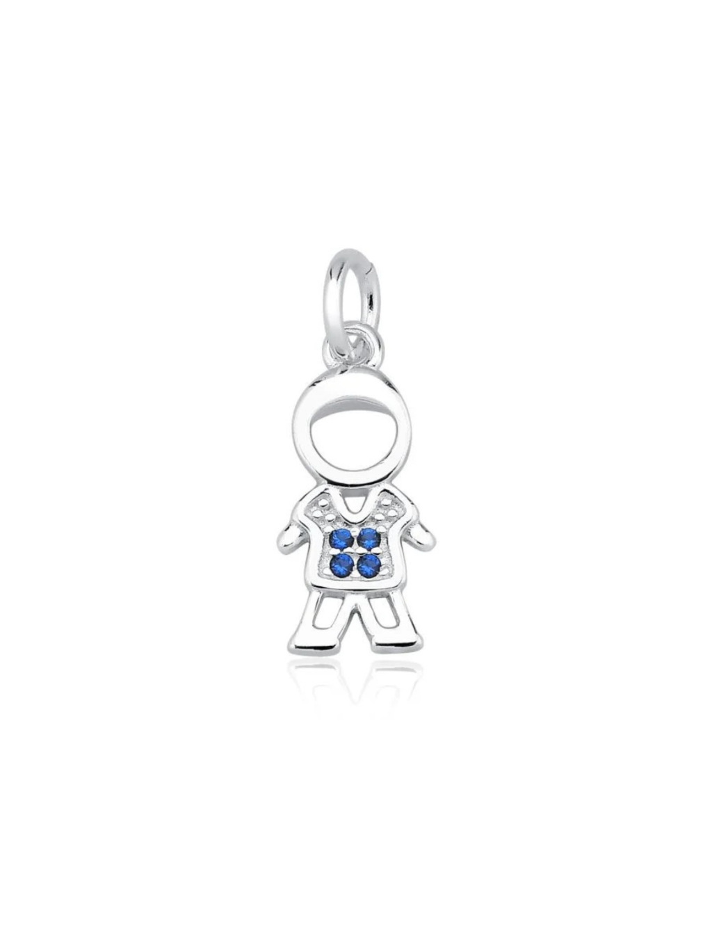 Pingente pequeno filho menino em prata 925 legítima cravejado com zircônias azuis