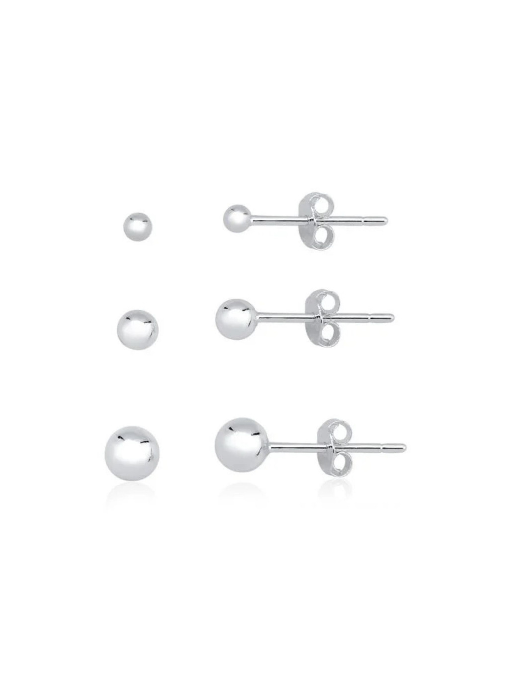 Trio de brincos de bolinhas lisas em prata 925 legítima 2mm, 3mm, 4mm..